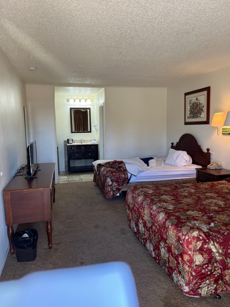 Did I mention this was a cheap motel? $65 for the night. 7.0 rating on Expedia. I’ve never had a bad stay with Expedia. But I think tomorrow I’m going to kick it up a to close to a hundred.